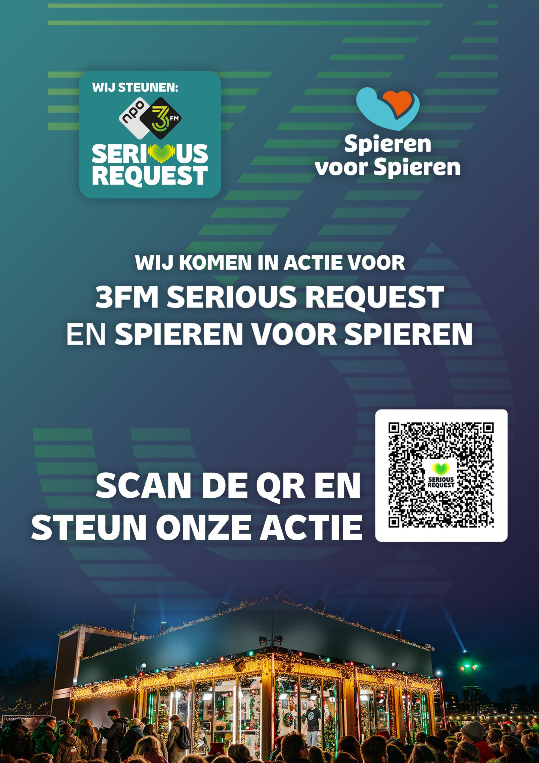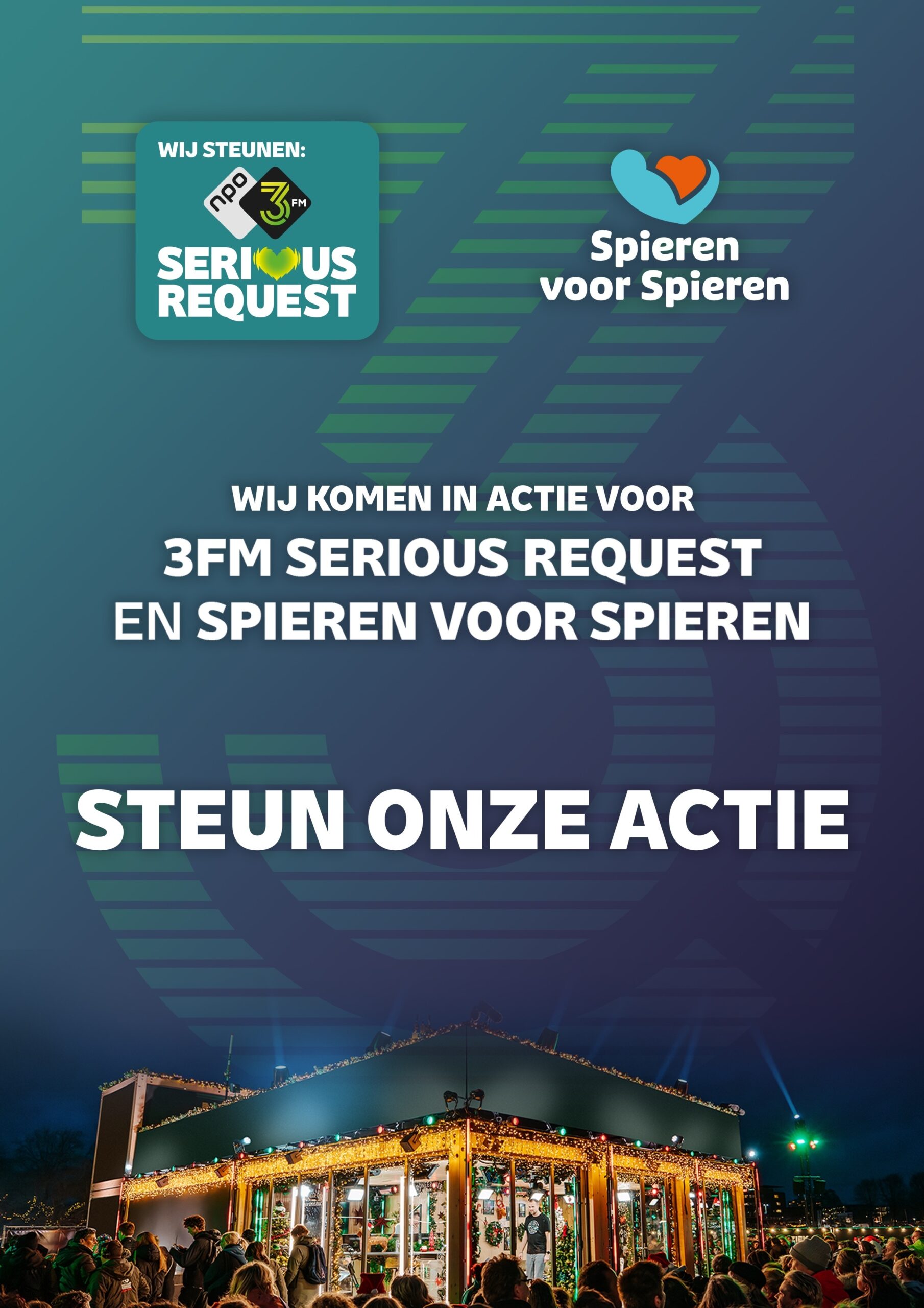 Dit jaar zetten we onze spierkracht anders in. Als trotse partner van Spieren voor Spieren sluit Fys’Optima zich met haar partners vol energie aan bij 3FM Serious Request, dat dit jaar in actie komt voor kinderen met een spierziekte. Een doel dat dichtbij ons vak én ons hart ligt. Vanuit die overtuiging zetten we ons in voor een toekomst waarin kinderen met een spierziekte alle kansen krijgen.